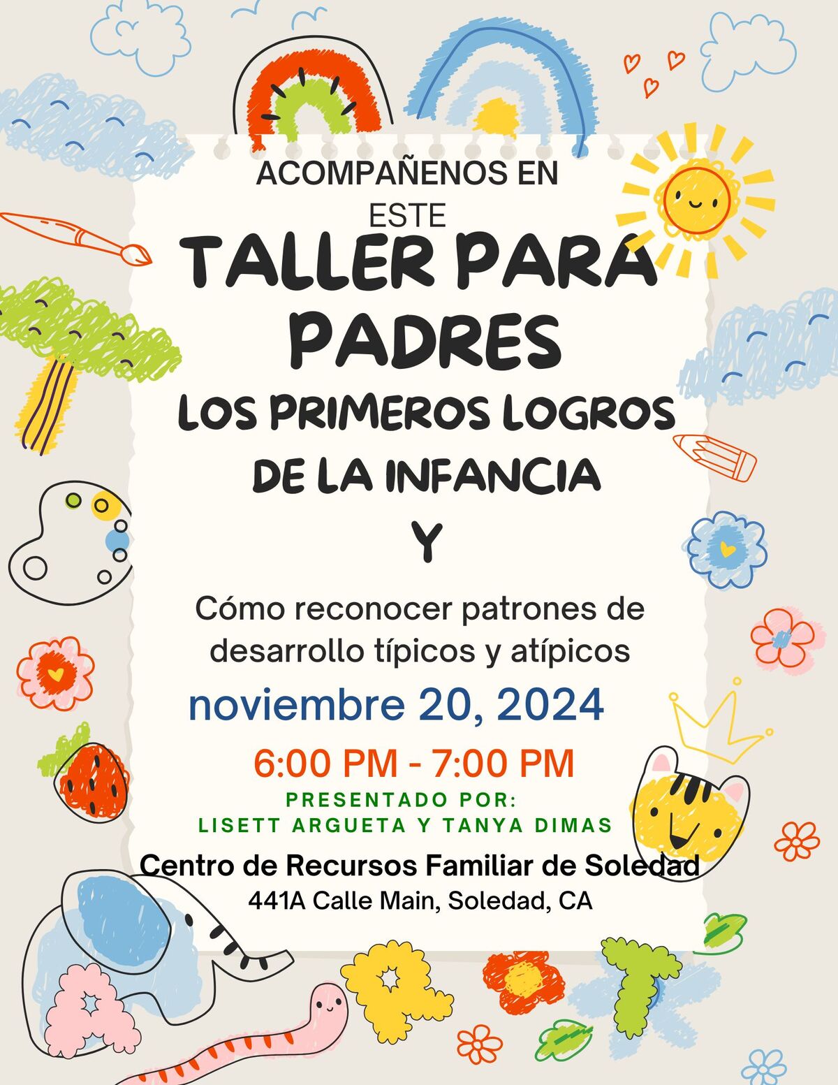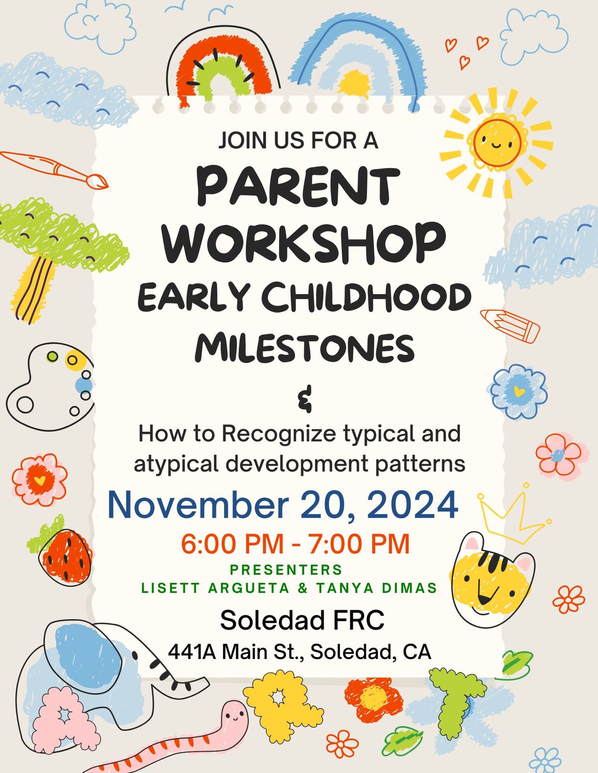 Parent Workshop Early Childhood Milestones November 20 6 pm | Taller para Padres Los primeros logros de la Infansia Noviembre 20 6pm