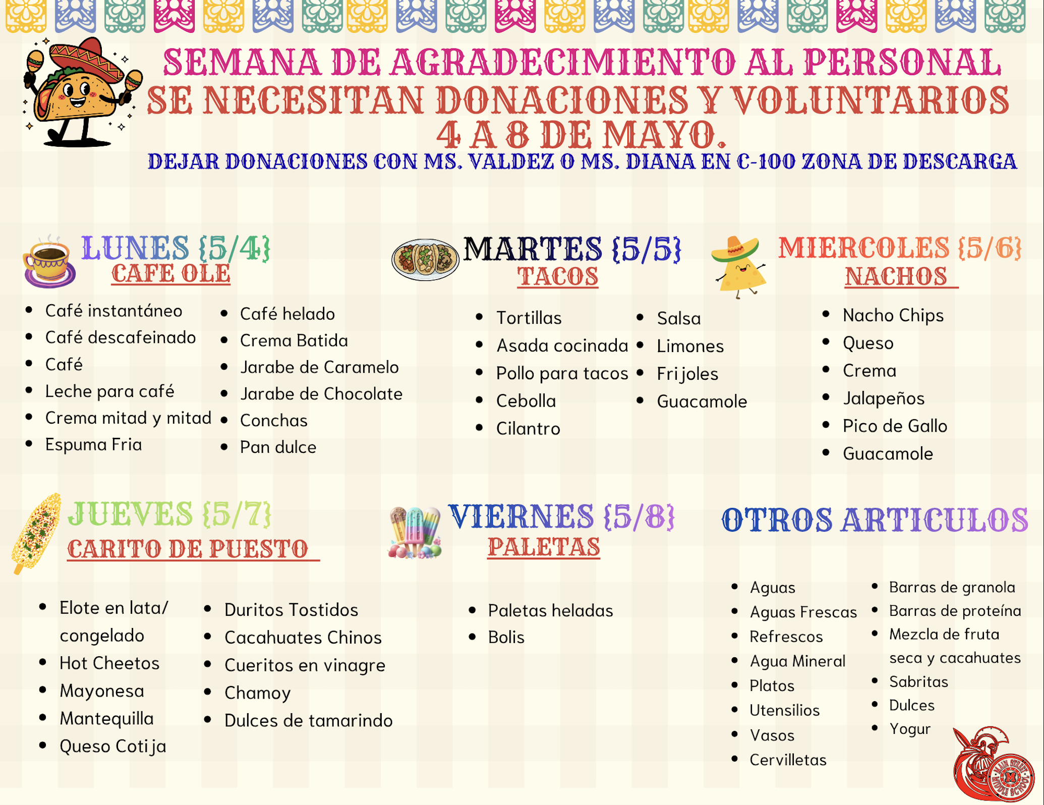 Donations & Volunteers Needed! Staff Appreciation Week!